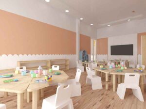 Chính vì vậy, xác định đúng khoảng cách bàn ghế mầm non là bao nhiêu là yếu tố bắt buộc trong thiết kế lớp học đạt chuẩn.